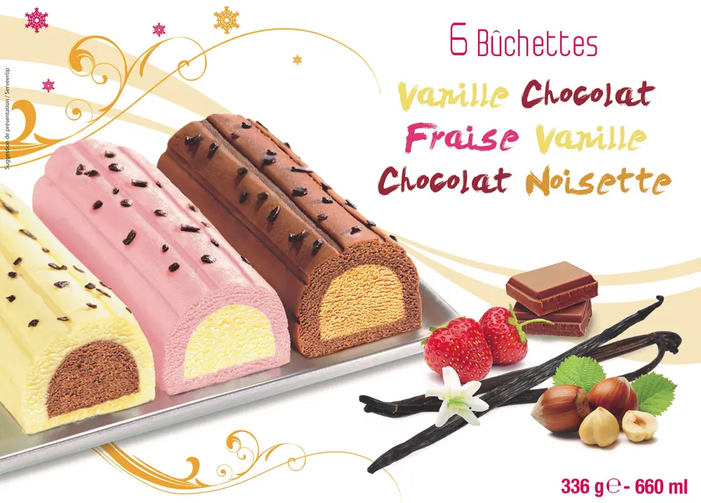 6 BUCHETTES VANILLE CHOCOLAT/FRAISE VANILLE/CHOCOLAT NOISETTE